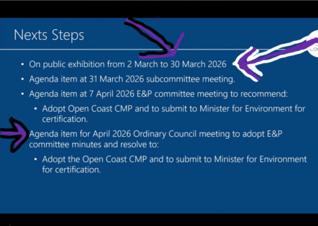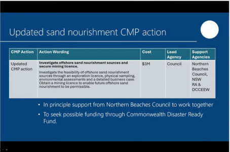 You can see and hear the staff explain next steps in potential sand nourishment for Wamberal and The Entrance North in the first 30 minutes of the meeting.